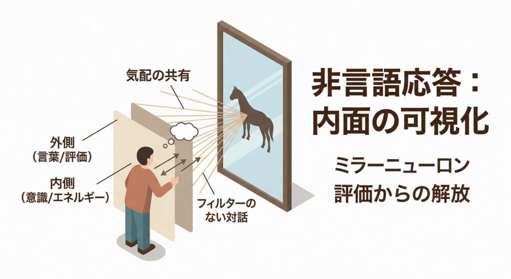 言葉の通じない馬とのやり取りは、自分の内面やエネルギーの状態を映し出す鏡のような体験です。